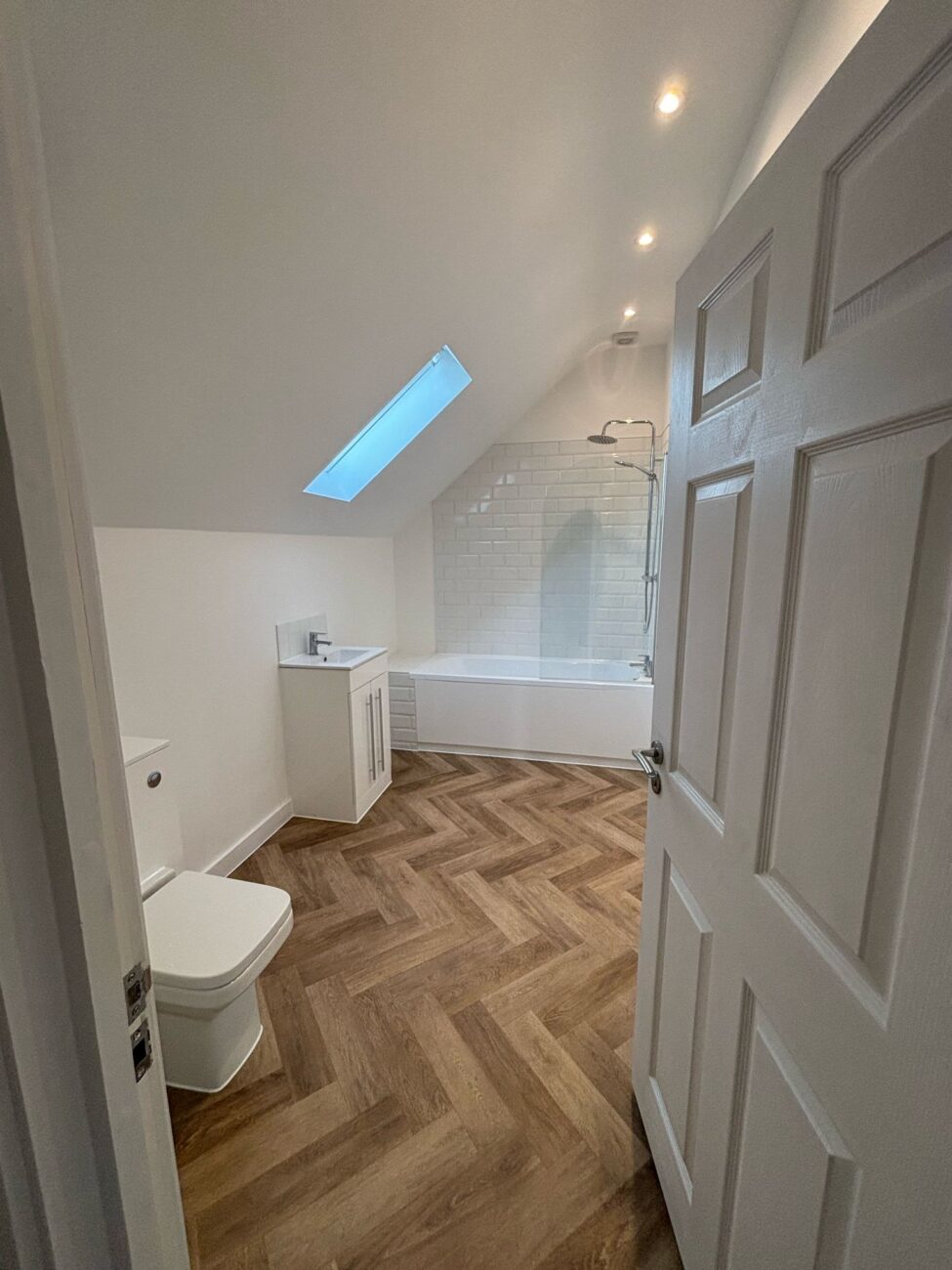 • Construction of internal walls and ceilings, installation of doors, and fit-out of a bathroom and kitchen for the new apartment.