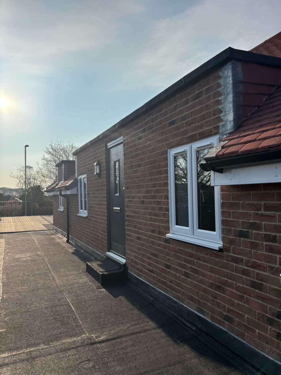 • Installation of facing brickwork, a pitched roof finished with slate tiles to match the existing building, and new windows and doors.